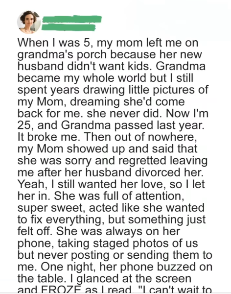The deepest hurt of my life happened when I was five. My mother chose her new husband over me, telling me with tears in her