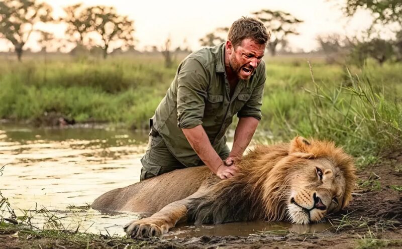 On a quiet evening in the wild, a scene of unexpected drama unfolded by a river. A safari group was wrapping up their day when