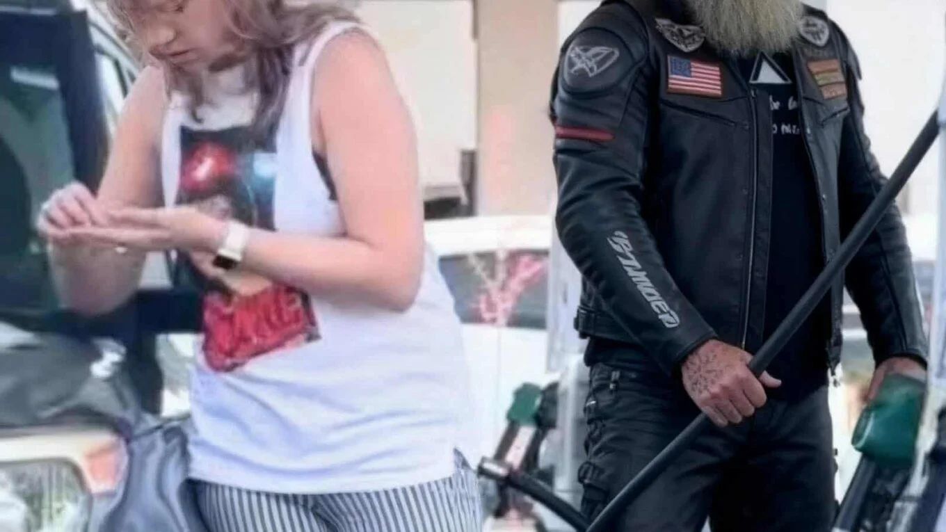 The biker saw her before she ever saw him—a shaking girl standing beside an empty tank, her hands full of coins that barely clinked. Her