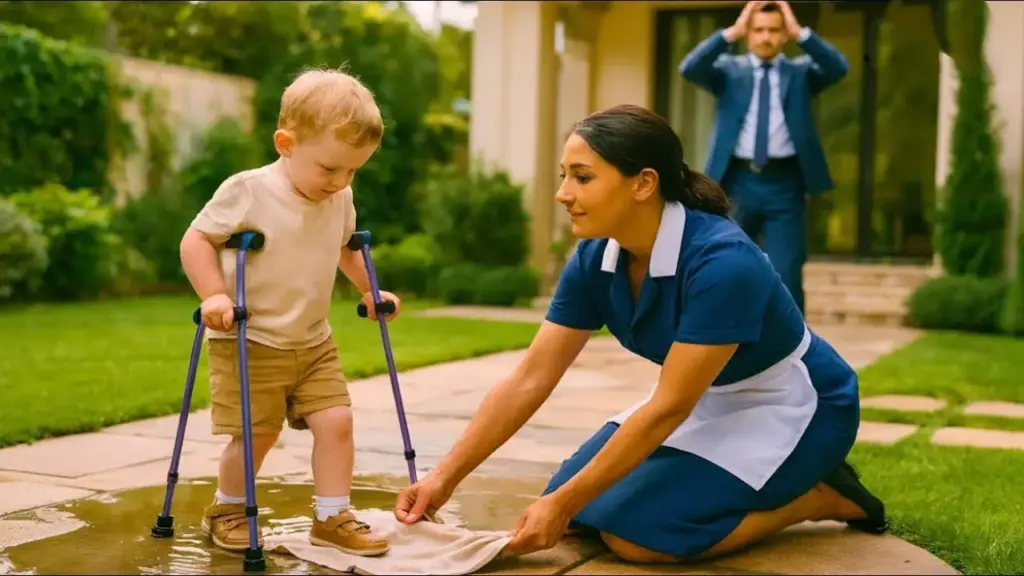 Alejandro looked at Lupita, who had looked down again. «Mateo, come here,» Alejandro said, kneeling down to his son’s level. The boy approached, leaning on his crutches.
