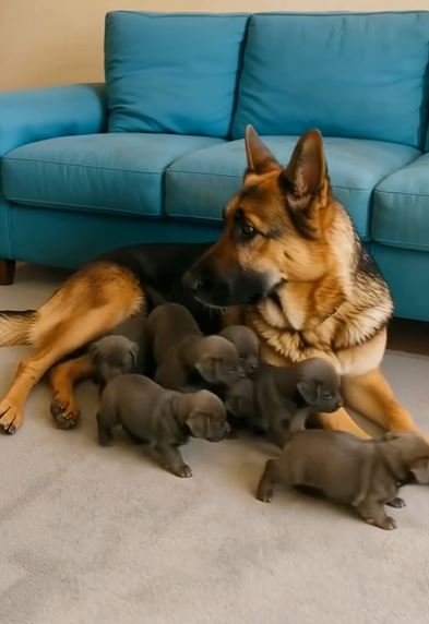 It was the kind of cold, wet autumn evening that makes you hurry home. For one man, however, the journey was interrupted by a sound barely audible over the rain—a faint, plaintive whimper. Following the noise, he found a German shepherd huddled under a flickering streetlamp, drenched and shivering uncontrollably. Her eyes, filled with exhaustion and a glimmer of hope, met his. When he knelt, she didn’t growl or retreat. Instead, she leaned her head against his leg in a silent gesture of trust. That single act of faith decided everything. He immediately wrapped her in his coat and carried her to his car, driving straight to the nearest animal clinic.