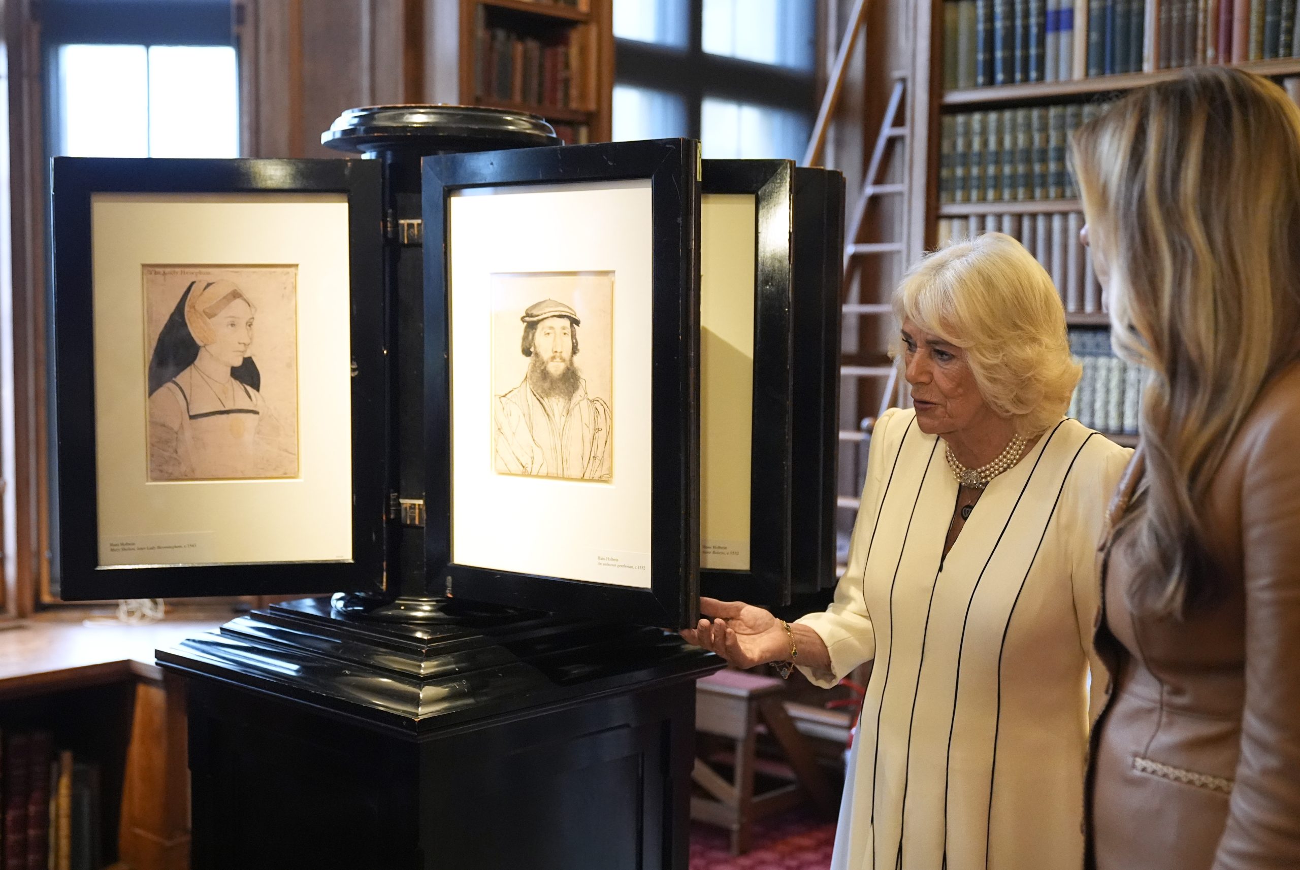 The hallowed halls of Windsor Castle’s Royal Library provided an unexpected runway for First Lady Melania Trump. For a private event with Queen Camilla, Mrs. Trump opted for a bold fashion choice: a head-to-toe caramel leather skirt suit. The luxurious outfit, with its sharp silhouette and glossy finish, stood in stark contrast to the Queen’s understated cream dress and pearls, creating a striking visual narrative of two different styles of power and elegance.