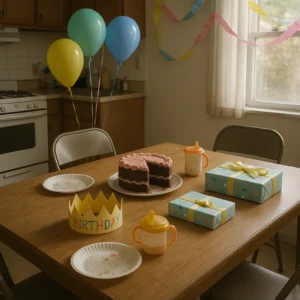 By noon, the apartment was transformed. Streamers in pink and purple crisscrossed the ceiling. A hand-lettered banner reading “Happy 5th Birthday Lily!” hung over the couch. Dollar-store tablecloths covered our hand-me-down furniture. The cake sat in the refrigerator, frosted in pink with purple flowers I’d painstakingly piped around the edges. It wasn’t professional, but it was made with love.