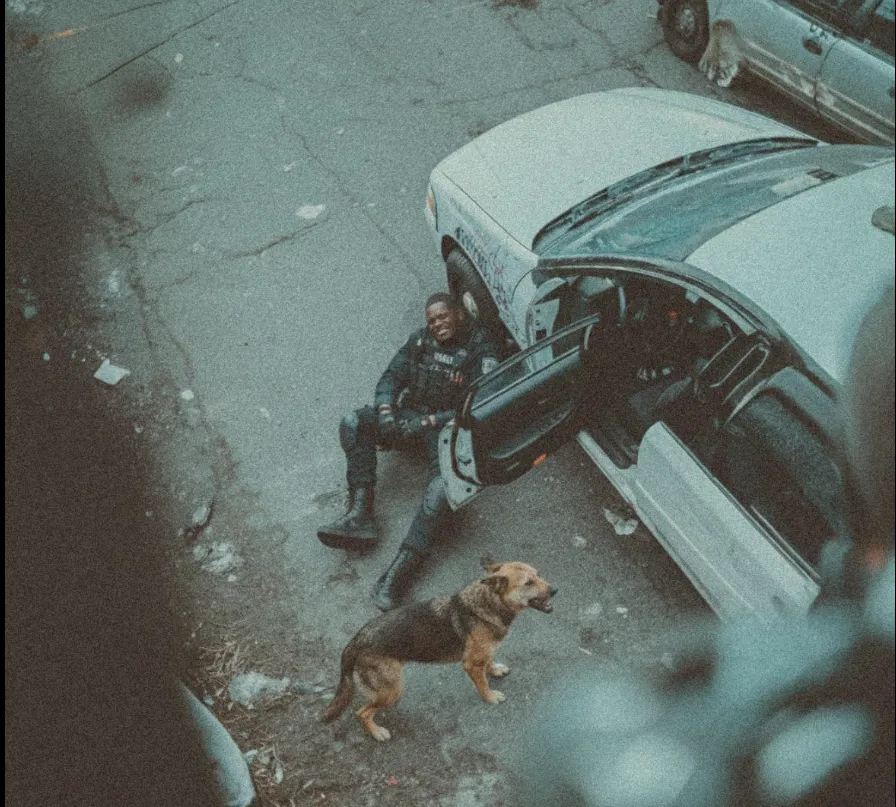 For a moment, all was silent except for the dog’s heavy panting and the faint sound of sirens in the distance. The stray turned toward the fallen officer, sniffed his bloodied hand, and lay down beside him. He didn’t leave. He didn’t run. He simply stayed there, watching over him until help arrived.
