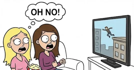 A blonde and a brunette were watching the news and they had someone on who was about to jump off a building.
