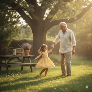 I would slip my small hand into his, and together we’d dance barefoot in the grass — twirling slowly beneath the shade of that white tree. It was our little ritual. Our secret joy. Something so simple, yet so deeply meaningful that it became part of who I was.