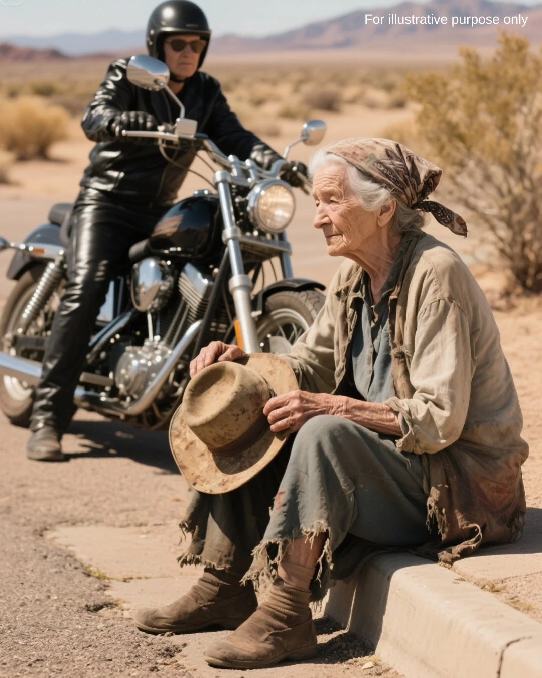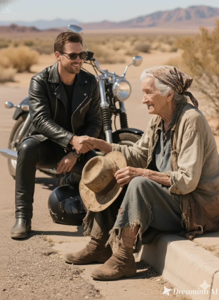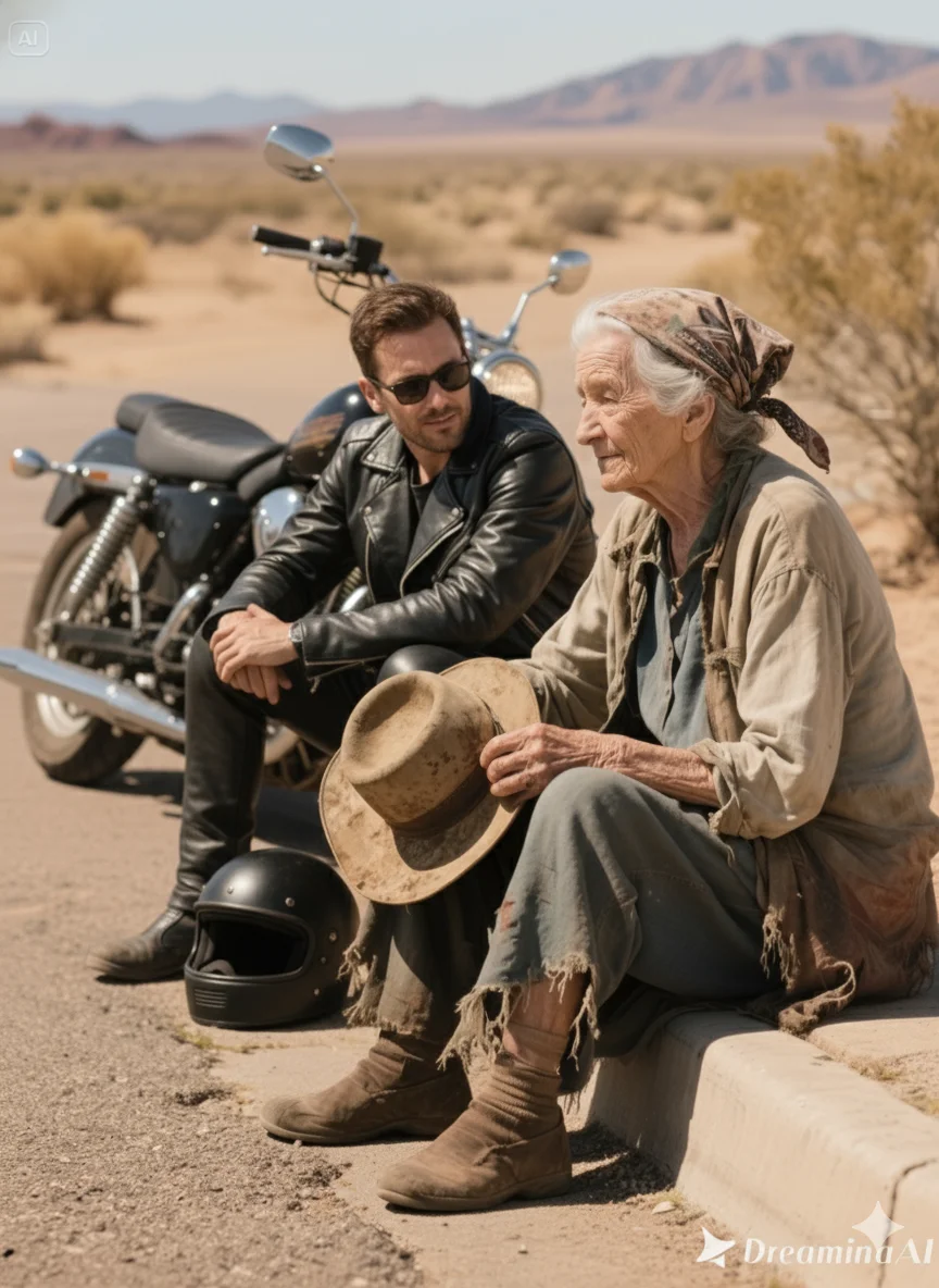 The rumble of the engine made me lift my head from my tears. A massive Harley-Davidson, chrome gleaming despite the dust, with a rider clad in full leather.