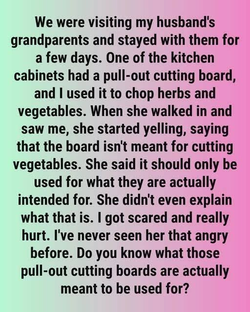 Most people walk into their kitchen, reach for the cutting board, and think of it as nothing more than a practical surface — a simple slab of wood meant for chopping vegetables, dicing onions, or slicing fruit. It’s a tool so ordinary, so ever-present, that we rarely pause to consider where it came from. Yet tucked inside countless older kitchen cabinets is a pull-out wooden board, one that many homeowners assume was designed purely for cutting. But its story stretches much further back in time, and its original purpose had very little to do with knives.
