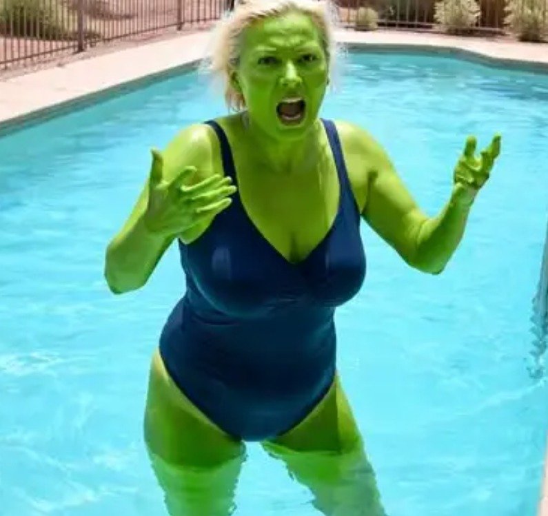 Loretta pointed at her arm. “What is in that water? What did you do? My whole body is green. Do you have any idea who I am?”