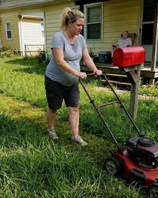 I could sense she was struggling, even though her tone was light. The mower groaned as it stalled out after jerking over a concealed clump.