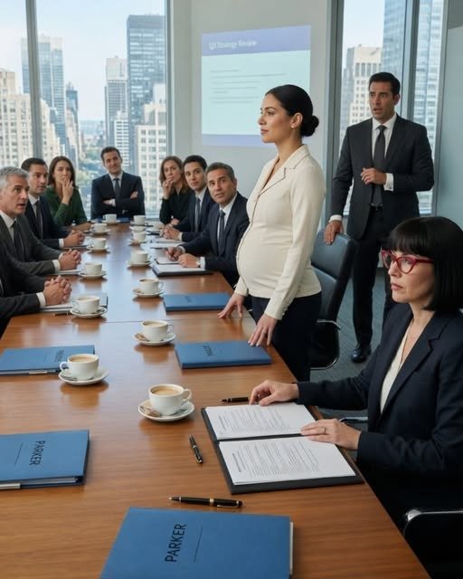 The room smelled like stale coffee and printer heat. My mouth tasted metallic. My hand drifted to my stomach before I realized I was doing it.
