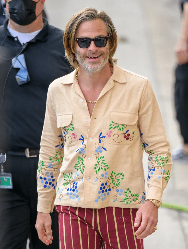 His style icon, Lapo Elkann, served as the inspiration for his appearance at the film’s premiere. “Tom Selleck was undoubtedly the inspiration for the short shorts. That’s not a falsehood,” Pine stated.